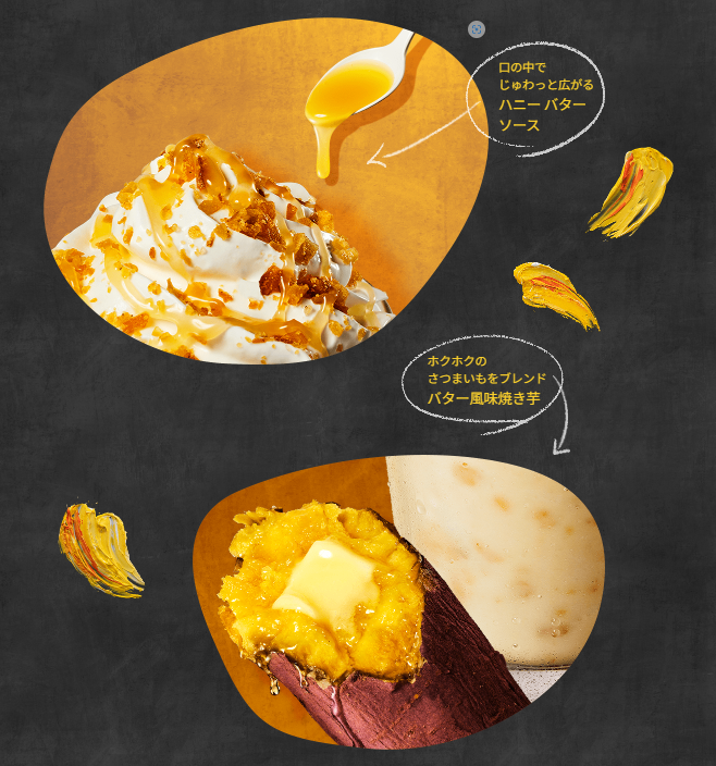 일본에서도 "가을"하면 꼭 먹어야 할 음식 중 하나! 바로 "고구마"가 빠질 수 없는데요. 계절 음식을 메인으로 해서 나온 음료라 더욱 기대가 됩니다.