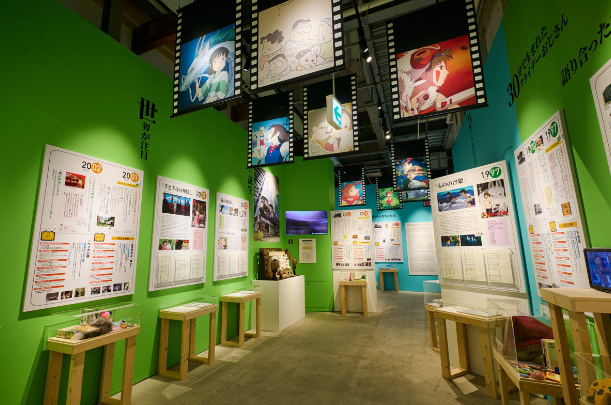 - 1층 : 지브리의 역사 / 금요일 로드쇼의 역사 / 지브리 영화 속 장면 / 굿즈 매장