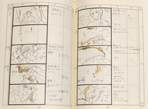 각 작품마다 영화에 필요한 그림 콘티가 전시되어 있는 것도 하나의 관람포인트입니다. 애니메이션이 만들어지는 과정을 몰랐는데 이렇게 기본이 되는 콘티를 작성하고 몇 분간 영상을 만들지 적어둔다고 하네요! 굉장히 새로운 경험이었습니다.