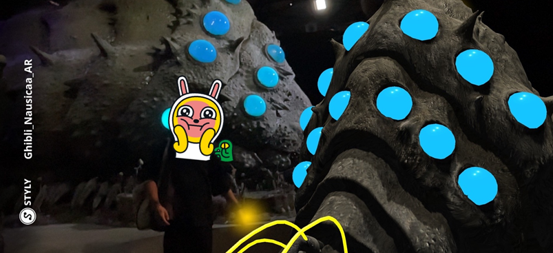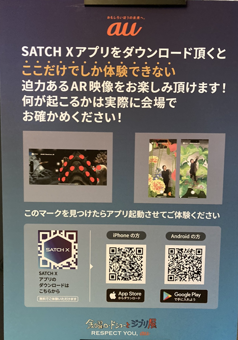 SATCH X 라는 애플리케이션을 다운로드하시면 「특정 장소」에서 AR체험을 할 수 있습니다. 대표적으로 借りぐらしの アリエッティ와 바람계곡의 나우시카 가 있었는데요. 어플을 가동한 후 특정 장소의 바닥의 QR코드를 입력시키면 배경이 움직이면서 그 안에서 사진촬영 및 동영상 촬영을 할 수 있습니다. 바람계곡의 나우시카의 장소에서는 캐릭터들이 역동적으로 움직이는데 동영상 찍기 좋았습니다!