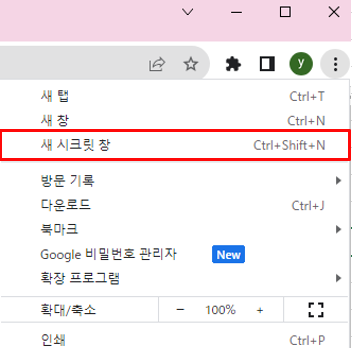 ② 여러 목록 중 "새 시크릿 창" 클릭!