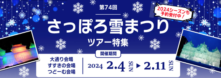삿포로 눈축제의 상징 '대설상 5기'를 중심으로 중소설상·시민설상·윈터 어트랙션 등이 전개될 예정입니다.