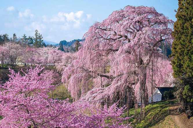 야마나시현의 야마타카진다이자쿠라는 수령(나무의 수명)이 무려 2000년 이상, 나머지 또한 1500년 이상으로 긴 수명의 벚꽃나무로 국가에서 천연기념물로 지정되어 전 세계에서 많은 관광객들이 구경하러 옵니다.