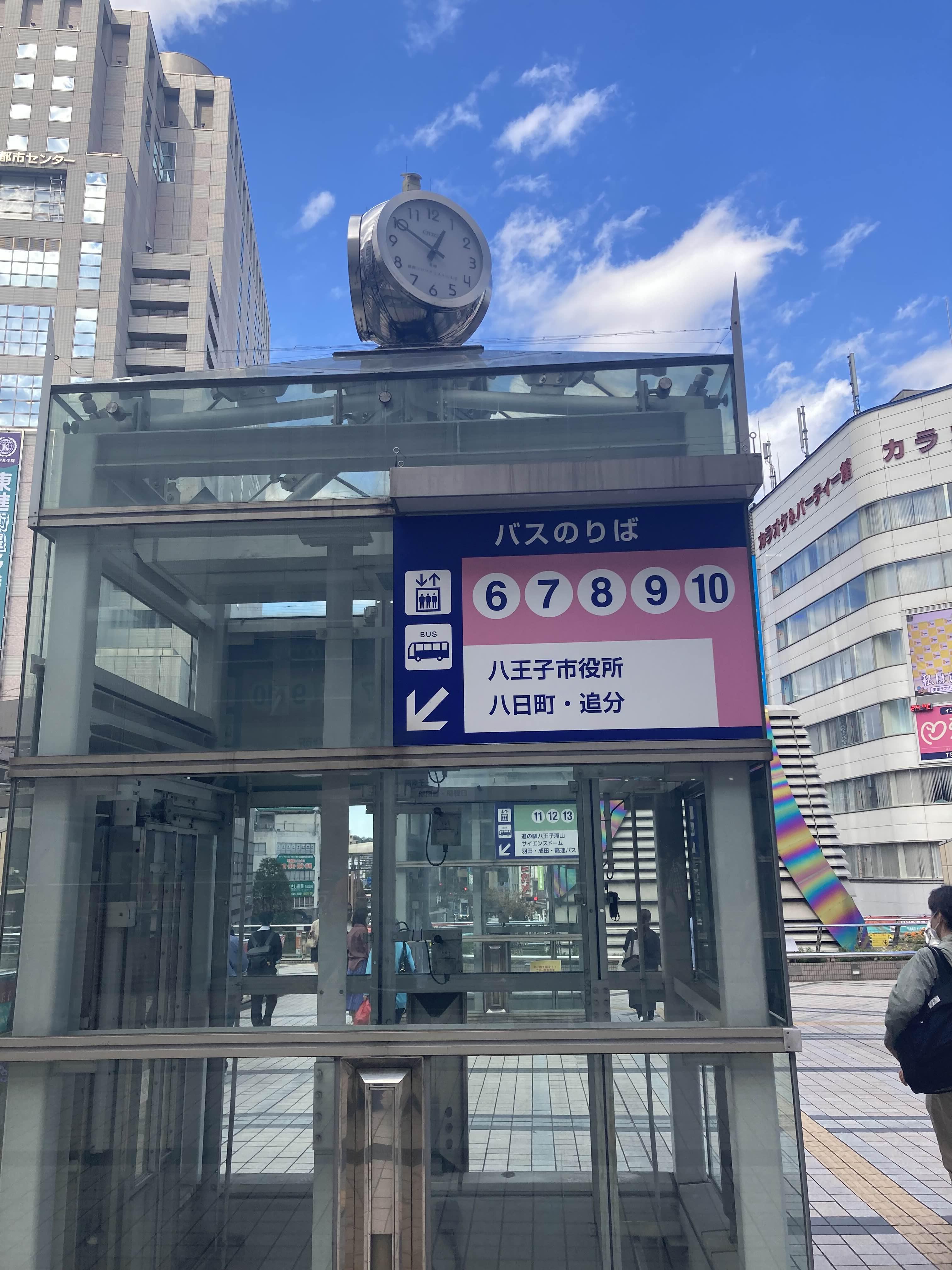 저희는 JR선을 타서 JR하치오지역에 도착했습니다.