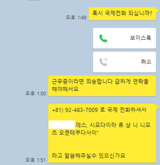이미 의뢰자분은 이미 한국으로 복귀하셨고 한국어 지원이 별도로 가능해 보이지도 않아서 저에게 연락을 하셨다 했습니다.