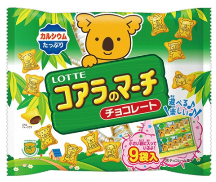 코알라 마치 쉐어 팩은 큰 봉지에 12g짜리 작은 봉지가 9개 들어간, 이름 그대로 가족이나 친구와 나눠먹기 좋은 과자입니다.