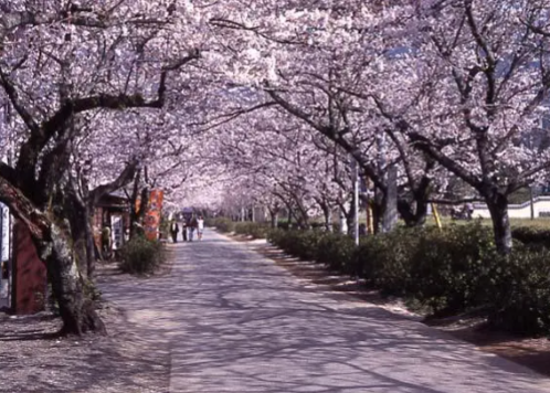 500m의 아키즈키스기 마장거리 양쪽으로 200여 그루의 벚꽃이 즐비한 벚꽃 명소.