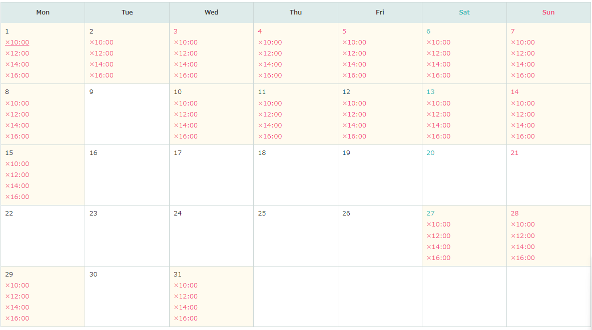 일본인이 예약할 수 있는 시간대와 다르게