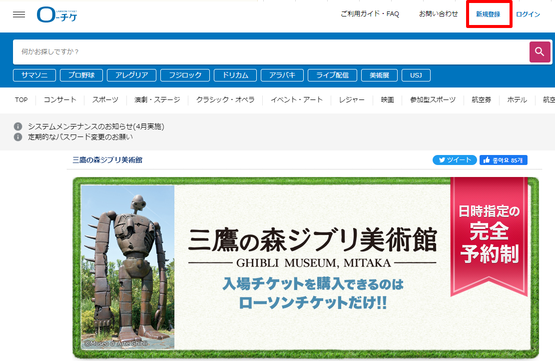 지브리 미술관 티켓을 예약하는 경로는