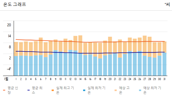 여행 가는 날짜의 날씨파악도 중요하지만 "복장" 선택에 있어서는 역시 평균 기온을 무시할 수 없는데요.