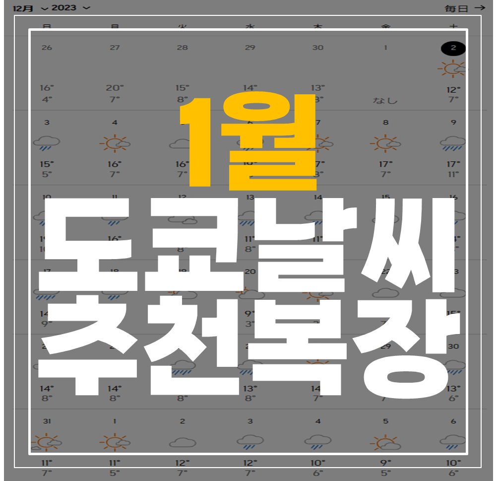 그래서 오늘은 2024년「도쿄」 1월 전체 날씨와 기온, 추가로 추천 복장까지 알려드리려고 합니다!