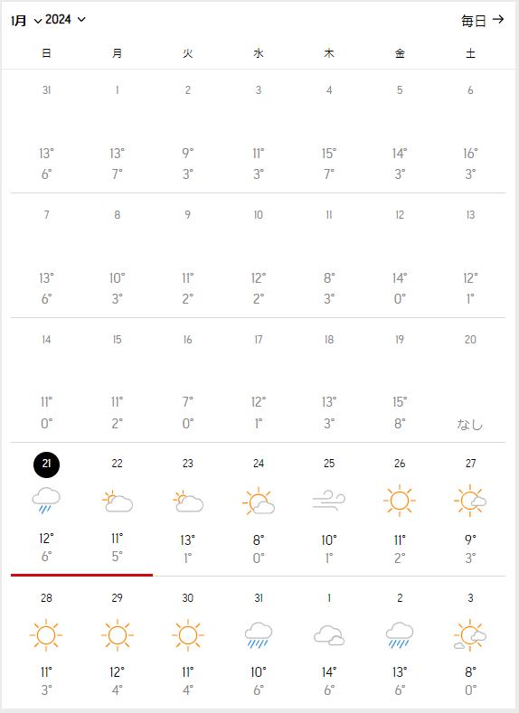 도쿄 1월 전체 날씨를 확인해 보겠습니다.
