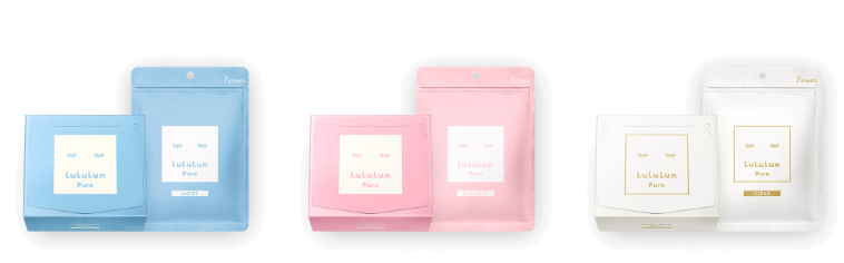루루룬 페이스 마스크의 레귤러 시리즈는 피부 타입에 따라 선택할 수 있는 세 가지 버전으로 제공됩니다. 피부의 수분 밸런스를 유지하는 핑크(중성 피부 타입용), 집중 보습 케어를 위한 블루(중성 및 건성 피부 타입용), 깨끗하고 투명한 피부를 위한 화이트(중성 및 지성 피부 타입용).