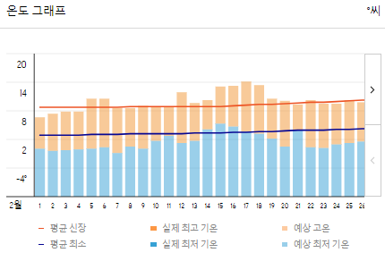 2월 초는 역시 춥지만 봄에 다가서는 2월 말은 기온이 점점 높아지는 것을 확인하실 수 있습니다