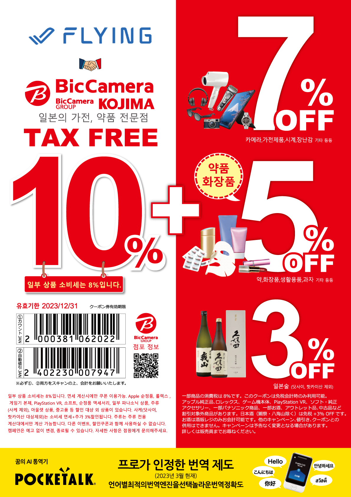 돈키호테에서 판매하는 것들 대부분 빅카메라에서도 판매하기 때문에 일본여행을 준비하시는 분들은 꼭 아래 할인쿠폰을 저장해놓고 사용하시기 바랍니다.