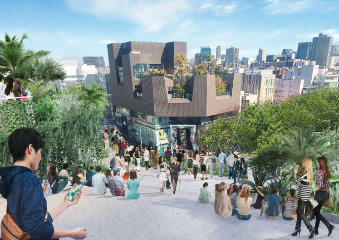 외관과 옥상 디자인은 건축가 히라타 아키히사가 설계했습니다. 도큐 플라자 하라주쿠 "하라카도"는 오모테 산도의 느티나무와 무성한 신궁의 숲, 오모테 산도의 세련된 거리 풍경이 "KNIT DESIGN"을 콘셉트로 공존하는 새로운 도시를 표현합니다.