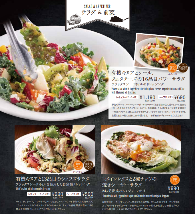 하몽, 치즈, 샐러드, 캐비어, 연어 등
