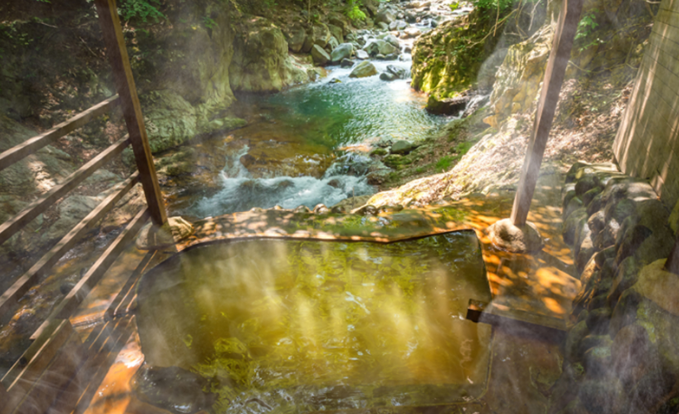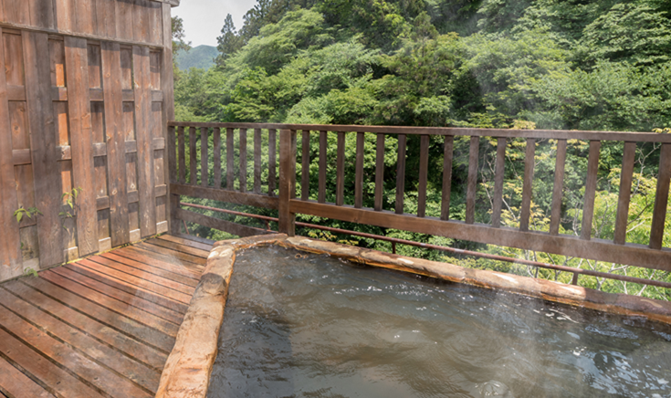 사계절마다 바뀌는 가타가와 강의 계곡미를 오감으로 맛볼 수 있고, 입욕 중에 들새가 눈앞에 머무르는 것도… 시간을 잊고 자연 속에 녹는 일체감과 여유와 힐링을 즐기세요.