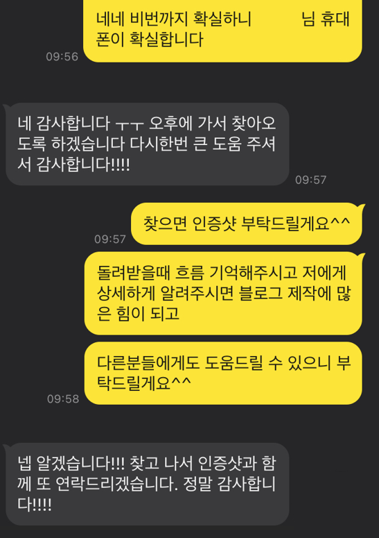 - 분실물 찾은 후기