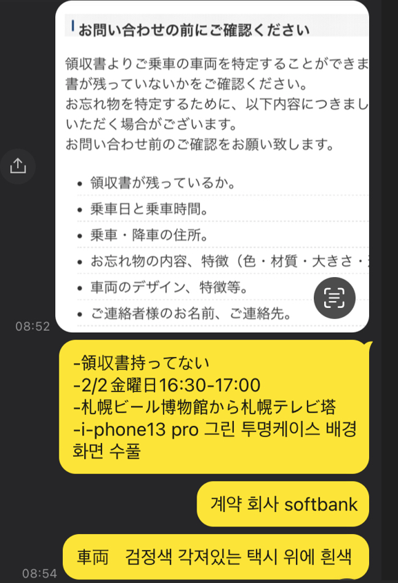이번 의뢰자분은 삿포로 여행 첫날, 택시에 휴대폰을 두고 내리셨는데요.