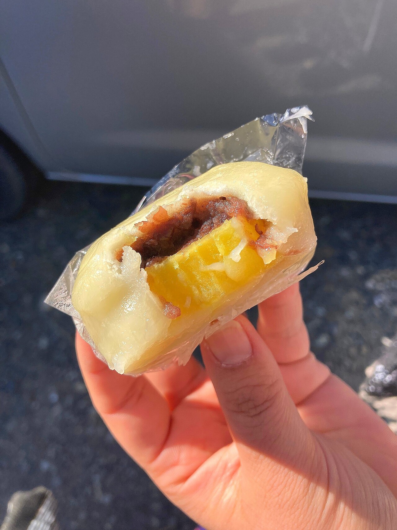 굉장히 큰 고구마와 팥이 떡 안에 들어 있어서 첫 식감은 떡의 쫄깃함으로 시작해 달달함으로 끝나고 고구마와 팥향으로 마무리. 진짜 맛있더라고요~