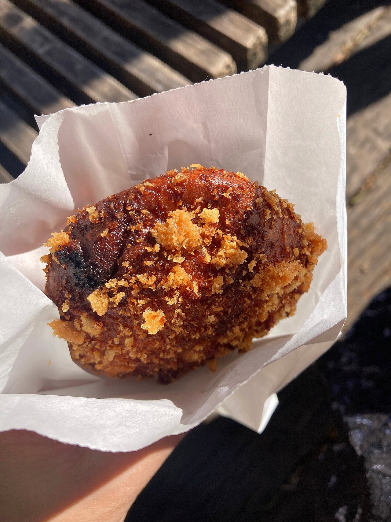카레빵은 진짜 말해 뭐 해... 였습니다. 갓 구운 카레빵이라 그런지 굉장히 바삭바삭하고 촉촉했습니다. 사진으로만 봐도 알 수 있는 바삭함이죠?