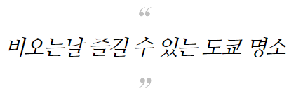 | 도쿄여행 :: 비 오는날 도쿄 실내 관광명소 (2) (0) | 2023.07.13 |
