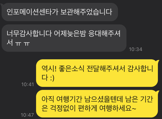 분실물은 "여권"이 들어있는 가방이었고, 당장 돌아갈 때 필요한 여권이 없다 보니 의뢰자분께서 굉장히 불안해하시더라고요.