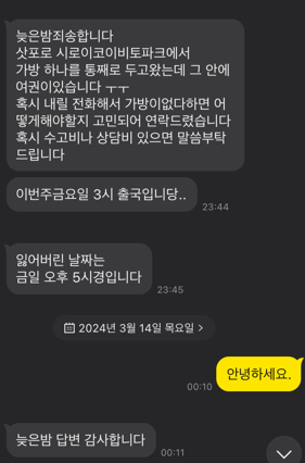 | 일본분실 :: 삿포로 택시 영수증 없는 분실물 찾아드린 후기 (0) | 2024.02.09 |