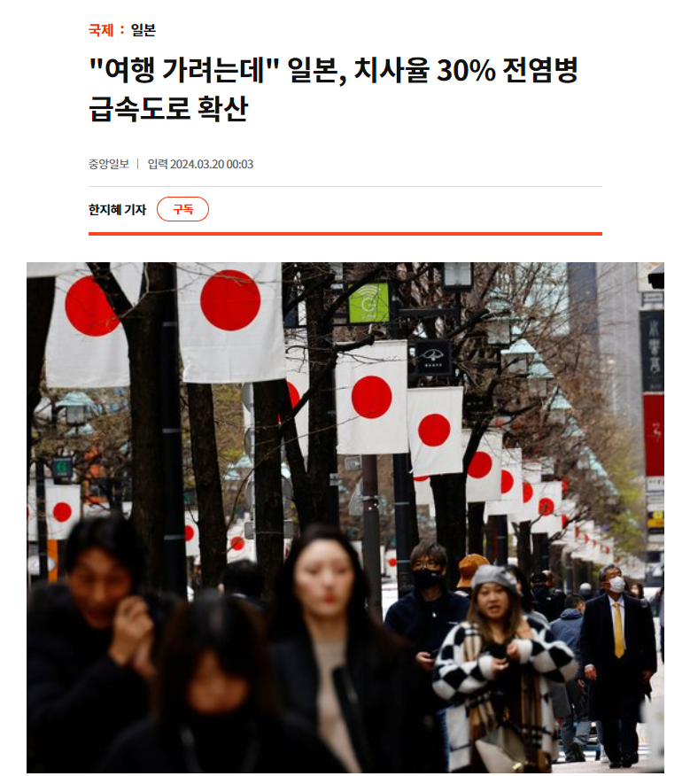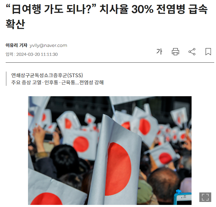 오늘은 일본에서 치사율 30%, STSS라는 전염병이 돌고 있다는 뉴스를 접해서 급하게 포스팅을 작성하게 되었습니다.