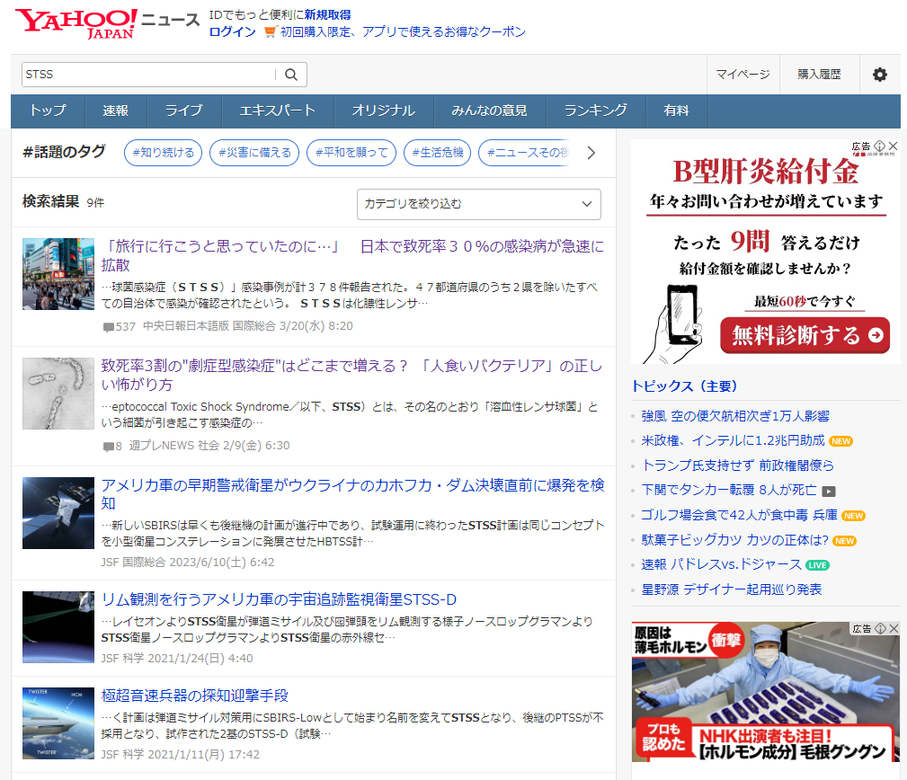 YAHOO NEWS에서도 "STSS"를 검색해 봤을 때 기사가 1~2개 밖에 나오지 않고요.
