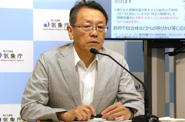 일본 기상청과 평가 검토회 관계자들이 8일 미야자키현에서 발생한 지진과 '난카이 해곡 대지진' 연관성에 관해 설명하고 있습니다.