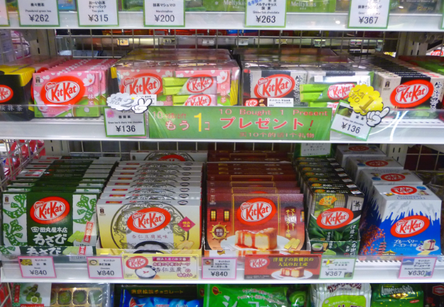 네슬레에서 제작한 세계적으로 유명한 초콜릿 바로, 겉은 바삭한 웨이퍼에 초콜릿이 코팅된 구조가 특징입니다. 일본에서는 다양한 독특한 맛과 한정판 제품들이 출시되어, 여행객들 사이에서도 큰 인기를 끌고 있습니다.