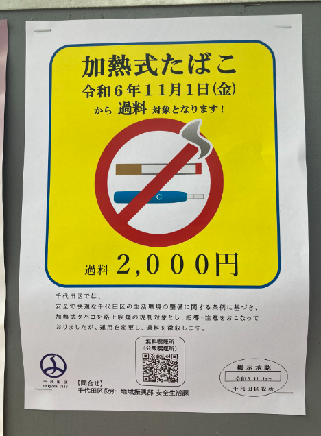 일본 흡연 지역별 벌금