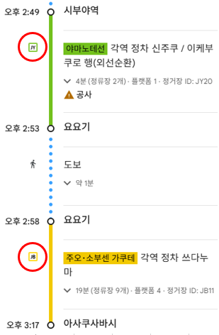 그러면 JR, 메트로, 도에이 각 회사별 라인을 어떻게 확인할 수 있을지 궁금하실 수 있으실거에요! 구글맵스 어플을 통해 쉽게 판별하는 방법을 알려드릴게요.