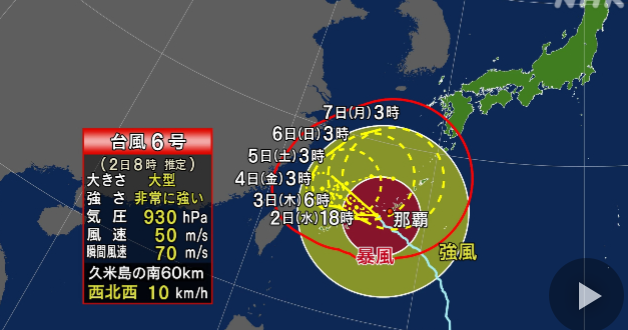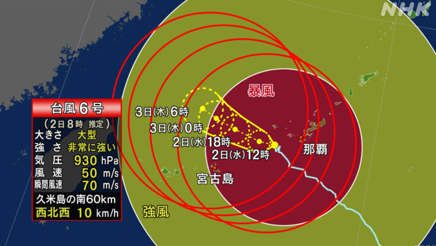 NHK에 따르면 태풍 6호는, 현 시간 ( 오전 7시 ) ,