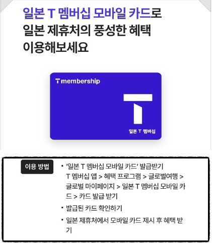 오늘은 정말 좋은 소식을 들고 왔습니다. 여러분 중 혹시 SKT 통신사를 사용하시는분들 계신가요? 일본 여행 수요가 갑자기 늘어서 그런지 T MemberShip 혜택을 일본에서도 사용할 수 있다는 소식입니다. 한국 통신사 멤버십으로 해외에서도 혜택을 받을 수 있다니... 비싼 요금제를 사용하는 만큼 할인받을 수 있는 것은 전부 받으면서 여행합시다!