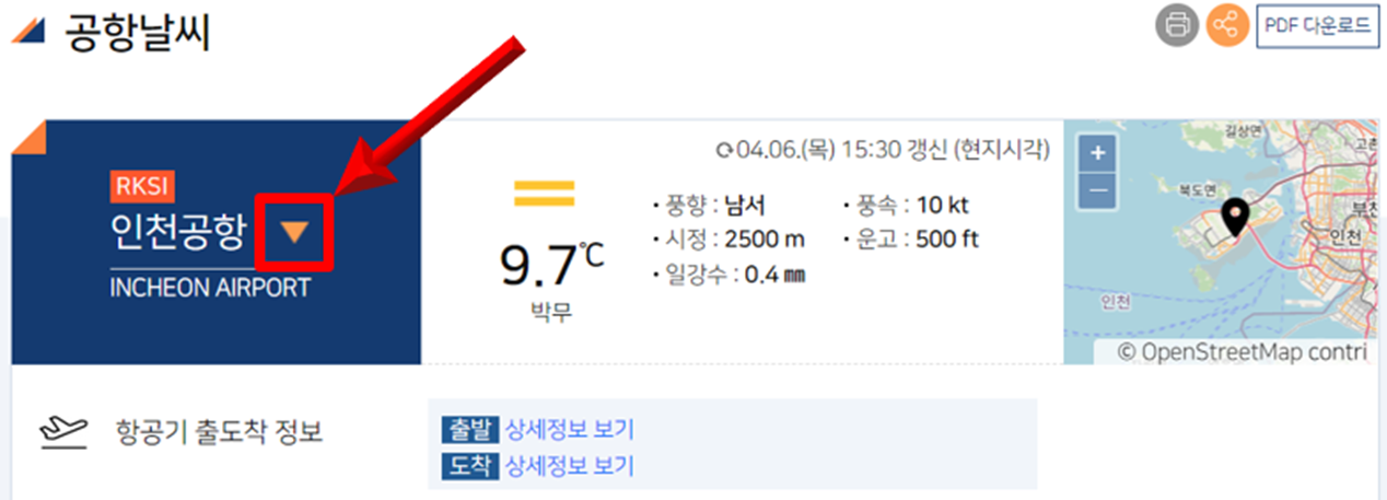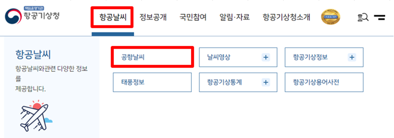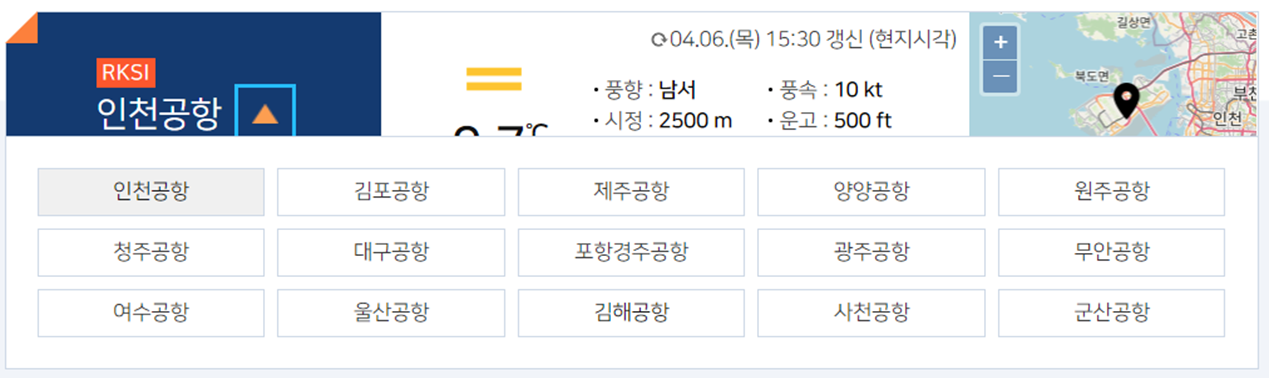항공날씨 → 공항날씨를 클릭해 줍시다!