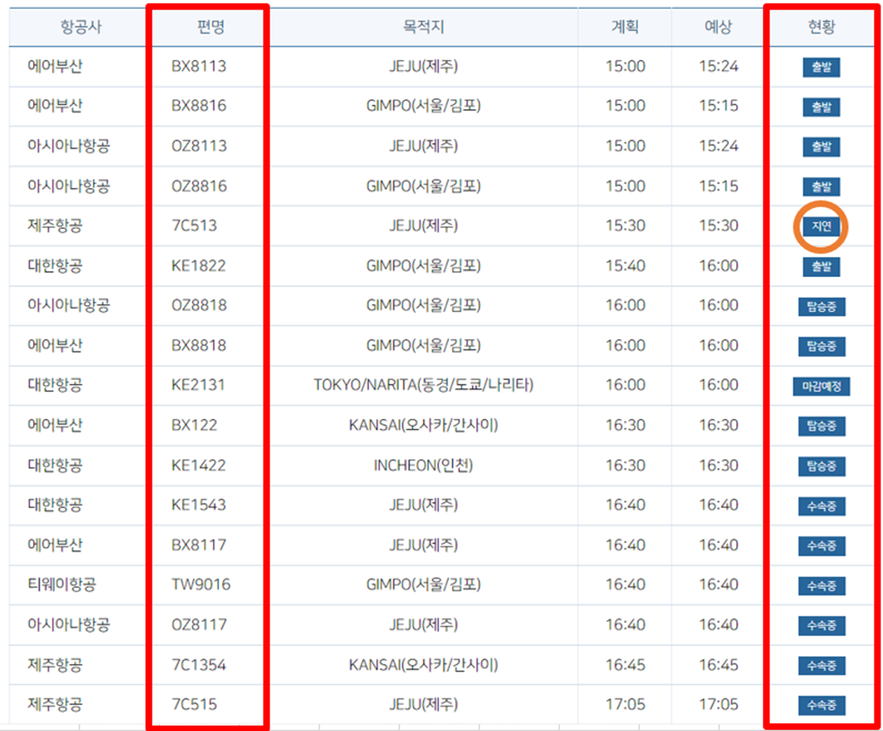 제가 조사하고 있는 지금 시간대에는 제주항공 7C513 편이 지연 중이네요.