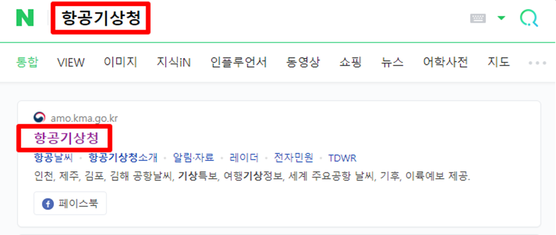 네이버에서 "항공기상청"을 검색해 줍니다.