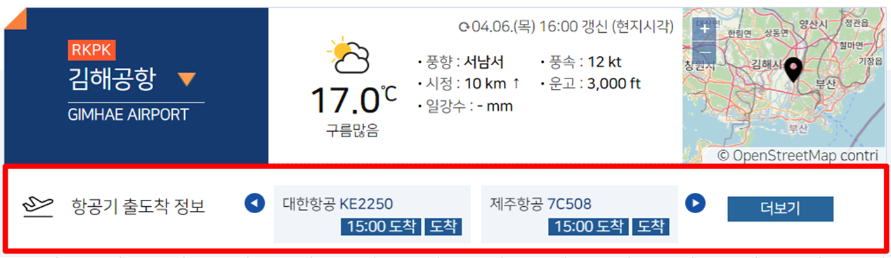 김해공항을 선택해 봤는데요.